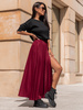 Elegancki KOMPLET bluzka z długim rękawem i spódnica maxi drapowana bordowy X317