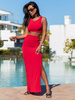 Dopasowany KOMPLET top i maxi spódnica z wycięciem na nogę czerwony X167 k01