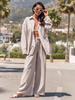 Komfortowy KOMPLET oversizowa koszula z długim rękawem i długie luźne spodnie z tkaniny ala len beżowy X174 k01