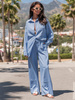( ilość produktów: 229 )Komfortowy KOMPLET oversizowa koszula z długim rękawem i długie luźne spodnie z tkaniny ala len jasny jeansowy X174 k01