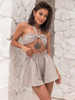 KOMPLET top stanik wiązany na szyję i szerokie krótkie spodenki beżowy X128 k01