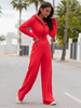 Elegancki KOMPLET klasyczna bluzka z krótszym rękawem i długie spodnie z szerokimi nogawkami bordowy E625 k01