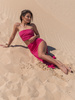 KOMPLET dopasowany top krótki na ramkach i maxi asymetryczna spódnica przekładana amarant E303 k01