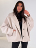 Oversizowy krótki PŁASZCZ KURTKA o szerokim kroju beżowy E515
