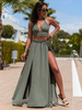 KOMPLET top ala stanik i spódnica długość maxi khaki E235 k01