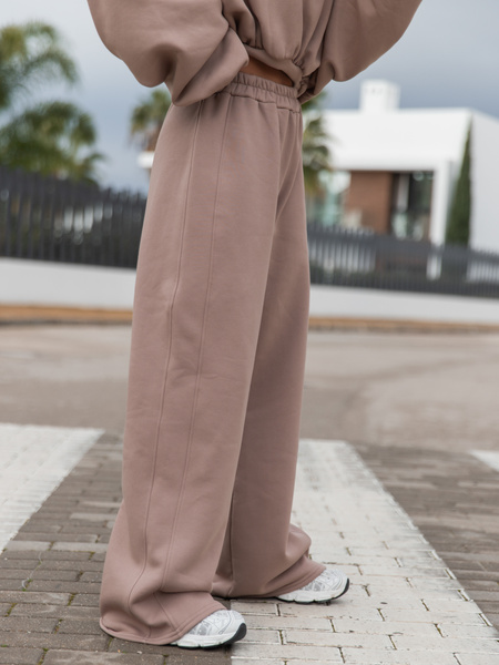 ( ilość produktów: 136 )Dresowe bawełniane SPODNIE z szerokimi nogawkami z bocznymi przeszyciami mokka X16 k01