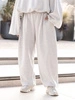 Bestseller!Luźne komfortowe SPODNIE z prążkowanej dzianiny wiscoza i bawełna beżowe X507