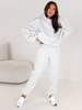 Dresowe bawełniane SPODNIE z wysokim stanem luźny krój ze ściągaczami stone E341