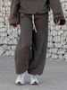 Oversizowe bawełniane SPODNIE dresu drapanego z przeszyciem i ściągaczami dark chocolate X476