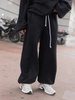 Oversizowe bawełniane SPODNIE dresu drapanego z przeszyciem i ściągaczami czarne X476