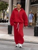 Oversizowe bawełniane SPODNIE dresu drapanego z przeszyciem i ściągaczami czerwone X476