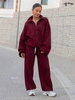 Oversizowa bawełniana BLUZA z dresu drapanego na stójce z zamkiem bordowa X477