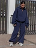 Oversizowe bawełniane SPODNIE dresu drapanego z przeszyciem i ściągaczami navy blue X476