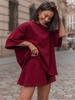 Dresowy bawełniany KOMPLET długi oversizowy t-shirt i krótkie spodenki bordowy X134