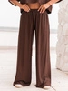 Szerokie SPODNIE z wiskozy ze średnim stanem z gumką w pasie czekoladowe X202 k01