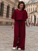 Szerokie SPODNIE z wiskozy ze średnim stanem z gumką w pasie bordowe X202 k01