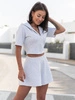 Dresowy bawełniany KOMPLET dopasowana bluza z kapturem i krótkie spodenki waniliowy X115 k01