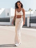 Dresowy bawełniany KOMPLET krótki top stanik na ramkach i długie spodnie z regulowanymi mankietami waniliowy X116 k01