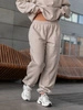 Dresowe bawełniane SPODNIE ze ściągaczami ecru X32