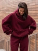 Viralowa Bawełniana BLUZA z drapanego dresu z kapturem na stójce z kieszeniami kangurka bordowa E1