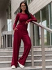 Codzienny komfortowy KOMPLET z wiscozy luźna bluzka z długim rękawem i szerokie spodnie bordowy X318