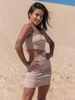 Dopasowana SUKIENKA mini na ramkach z wycięciem w pasie beżowa X110 k01