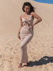 Maxi SUKIENKA z drapowanym dekoltem wiązana na plecach beż E312 k01