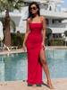 Maxi SUKIENKA z gołymi plecami i dekoltem typu woda czerwona X118 k01