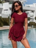 Wiskozowy KOMBINEZON sukienka z krótkim rękawem bordowy X122 k01