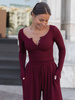 Bawełniana SUKIENKA asymetryczna przekładana z długim rękawem z prążkowanej dzianiny bordowa X500