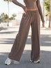 Szerokie SPODNIE z wiskozy z niskim stanem z gumką w pasie mokka X24 k01