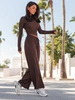 Dopasowana BLUZKA krótki top basicowy z wiskozy z długim rękawem brązowa X21 k01