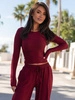 Dopasowana BLUZKA krótki top basicowy z wiskozy z długim rękawem bordowa X21 k01