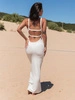 Wiskozowa SUKIENKA maxi na ramiączkach z gołymi plecami ecru X130 k01