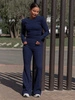 ZESTAW: BLUZKA z półgolfem z poduszkami na ramionach z dzianiny prążkowanej X461 + Luźne SPODNIE z szerokimi nogawkami z dzianiny prążkowanej X462