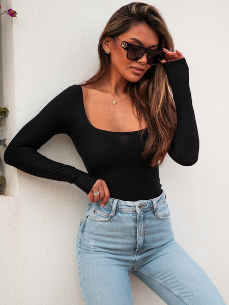 Dopasowane BODY z wiskozy kwadratowy dekolt czarny E40 k01