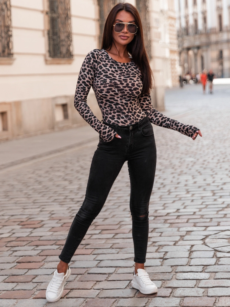 Klasyczna BLUZKA z długim rękawem z gładkiej dzianiny panterka E419