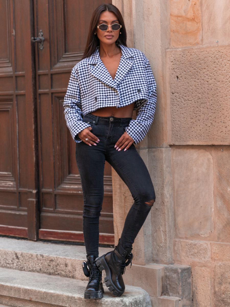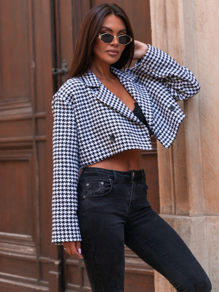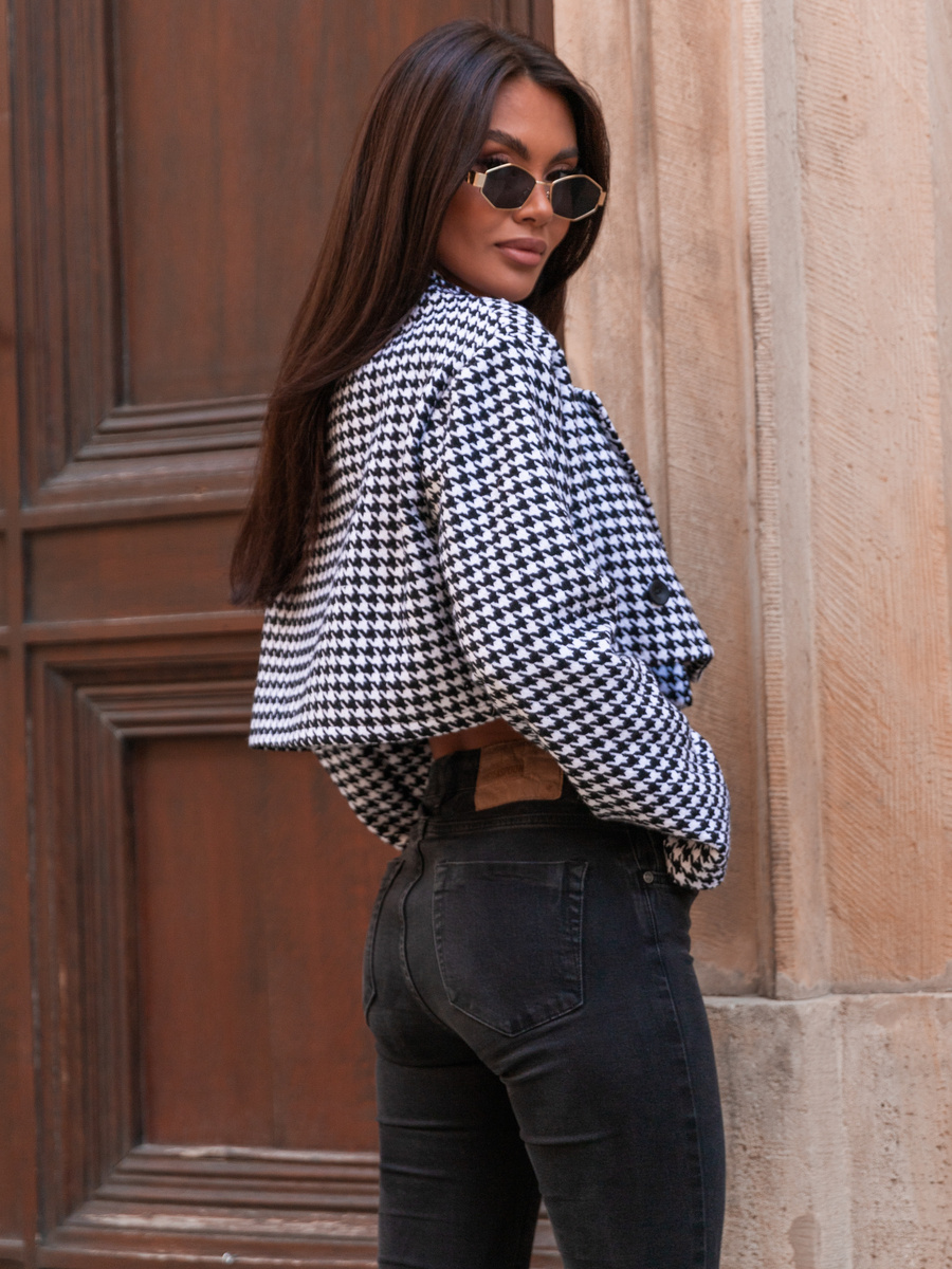 Oversizowa krótka MARYNARKA pepitka E450 k01