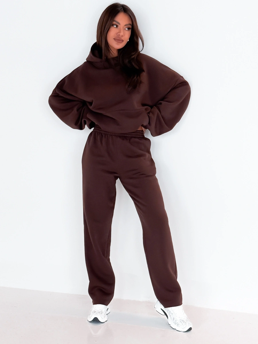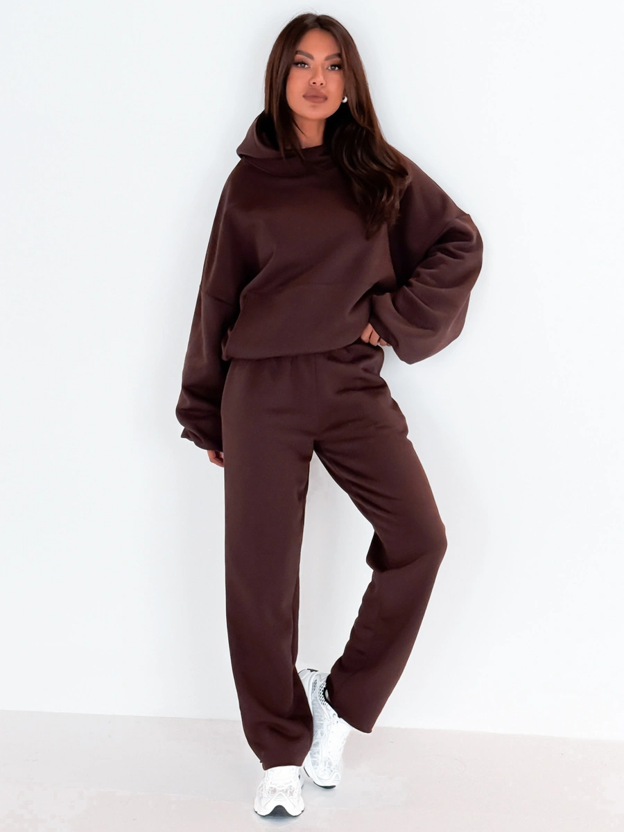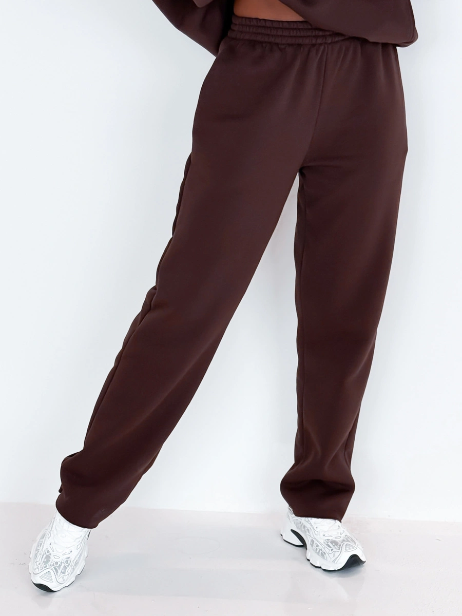 Długie spodnie z wysokim stanem o luźnym kroju, mankiety nie podwinięte, wykończone na surowo. Uszyte z bawełnianego dresu drapanego od wewnątrz dzięki czemu są bardzo przyjemna w noszeniu. Materiał najwyższej jakości od polskiego producenta.
