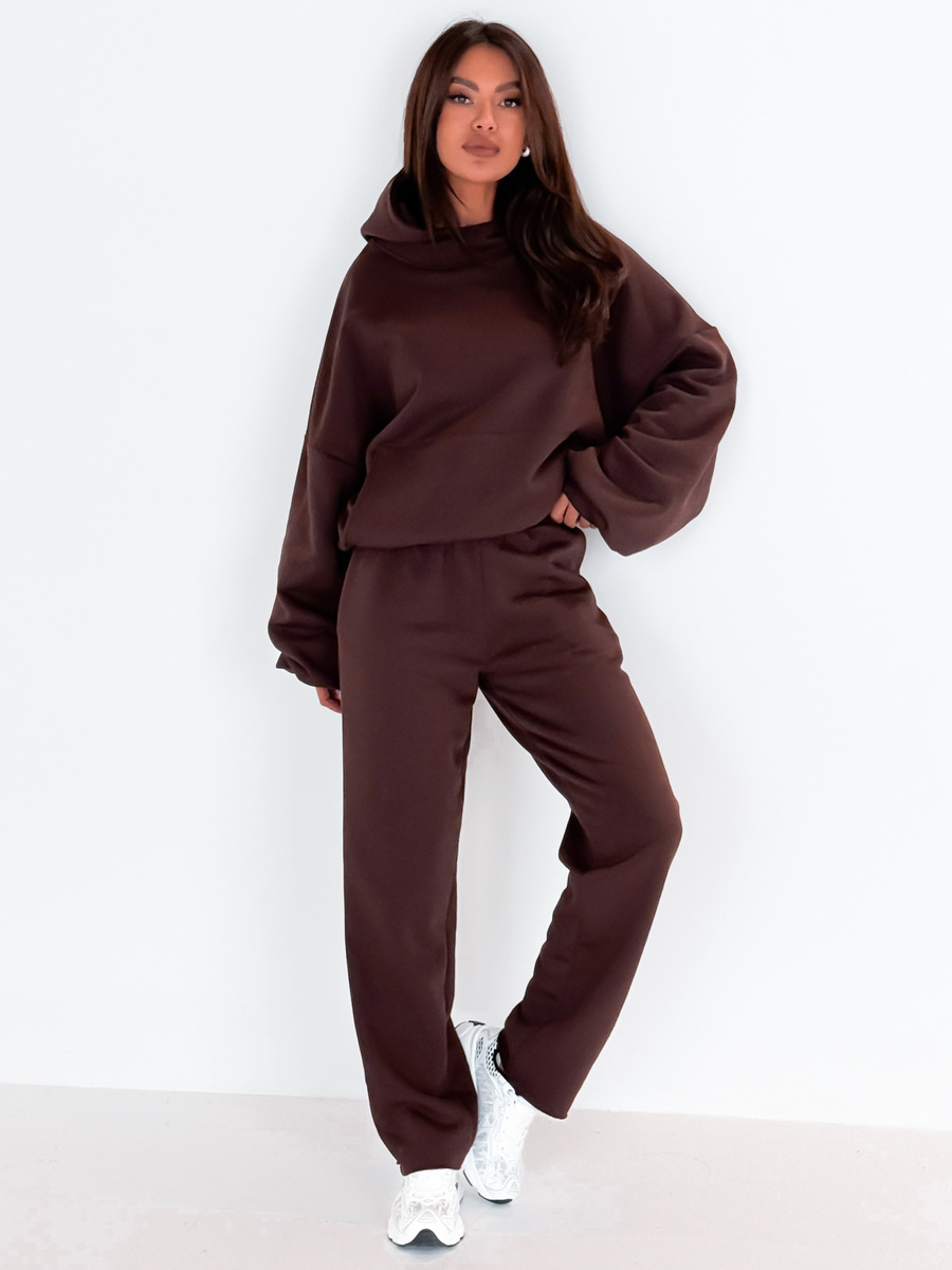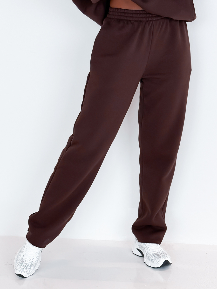 Dresowe bawełniane SPODNIE z wysokim stanem luźny krój brązowe E359 k01
