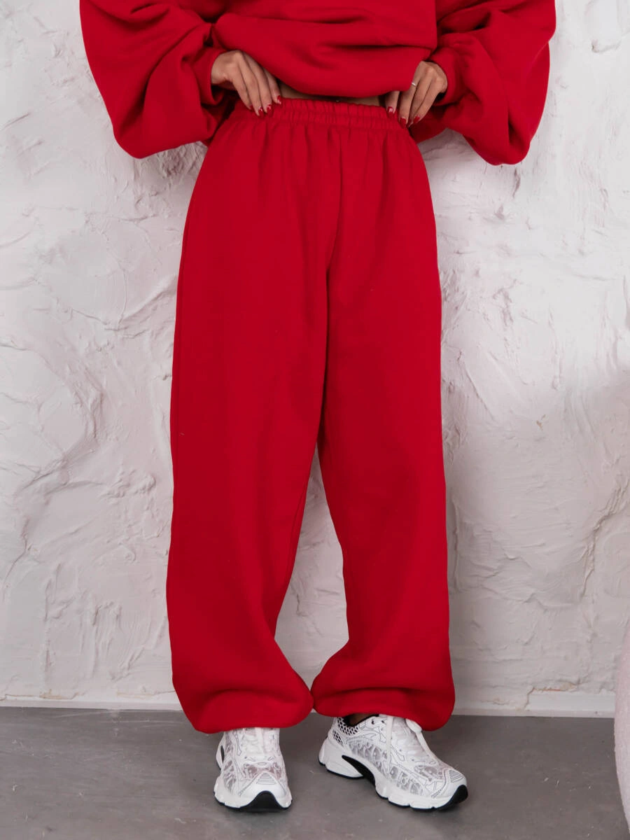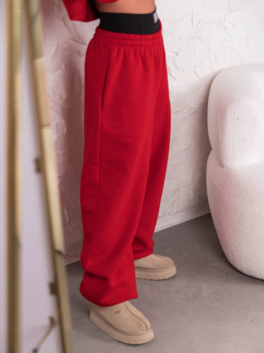 Opinie o Dresowe bawełniane SPODNIE baggy czerwone E643