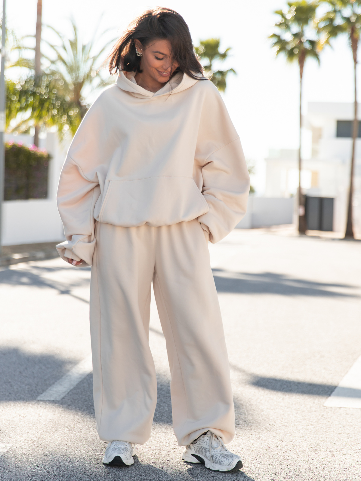 Dresowe bawełniane SPODNIE baggy waniliowe E643 k01