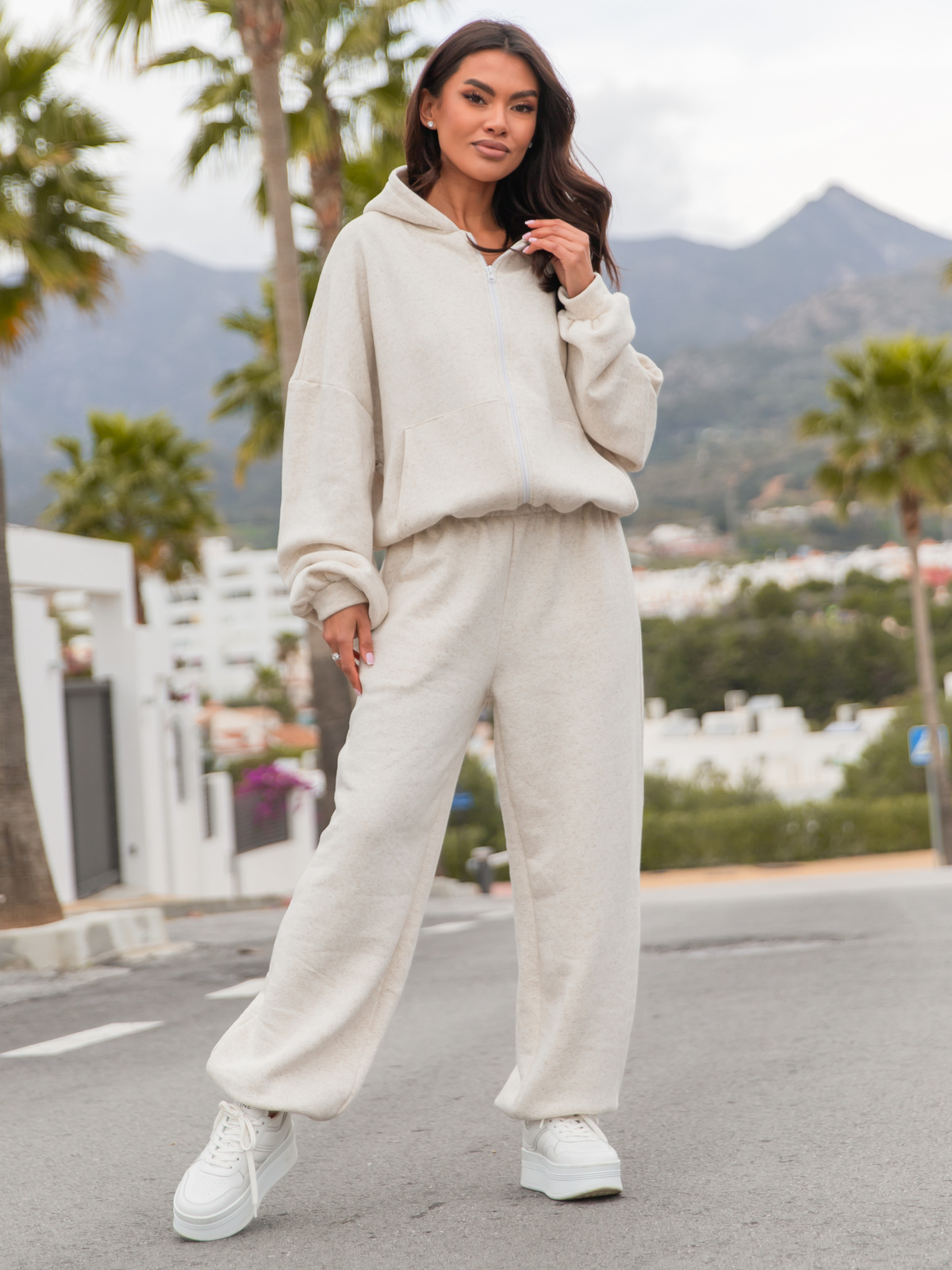Dresowe bawełniane z lnem SPODNIE baggy beż melanż E643 k01