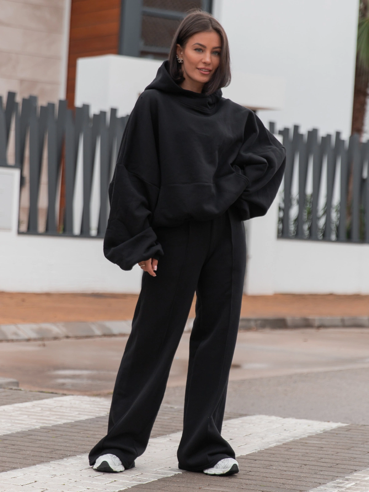 Luźne spodnie z gumką w pasie . Uszyte z bawełnianej dzianiny dresowej drapanej od wewnątrz, dzięki czemu jest przyjemny w noszeniu. Materiał premium od polskiego producenta. Materiał ten nie tylko otula ciepłem, ale również pozwala skórze oddychać, co czyni je świetnym wyborem na każdą porę roku.