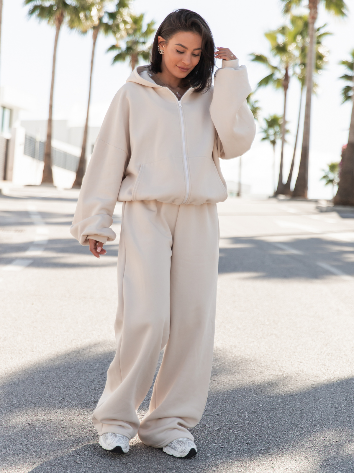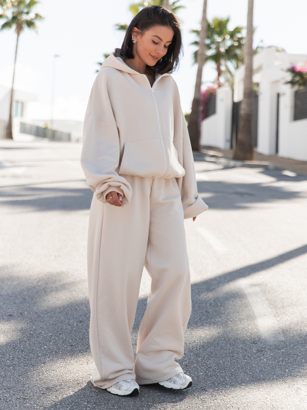 Luźne spodnie z gumką w pasie. Uszyte z bawełnianej dzianiny dresowej drapanej od wewnątrz, dzięki czemu jest przyjemny w noszeniu. Materiał premium od polskiego producenta. Materiał ten nie tylko otula ciepłem, ale również pozwala skórze oddychać, co czyni je świetnym wyborem na każdą porę roku. Stonowane kolory i minimalistyczny design sprawiają, że można je łatwo łączyć z ulubionymi T-shirtami, bluzami czy nawet eleganckimi dodatkami dla efektu "sportowej elegancji".