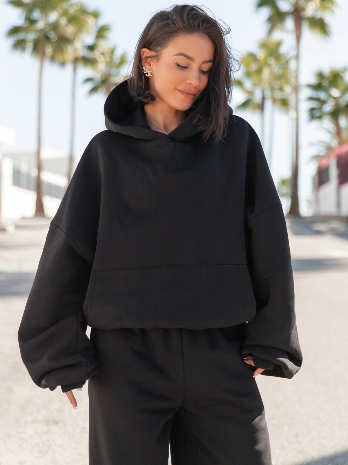 Oversizowa szeroka bluza kangurka z kapturem