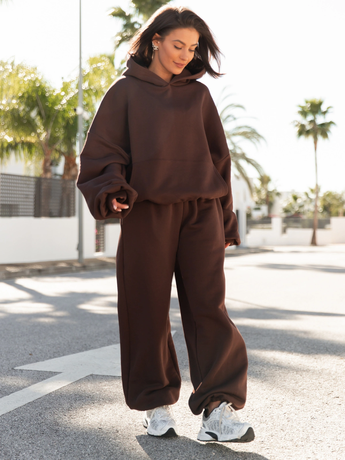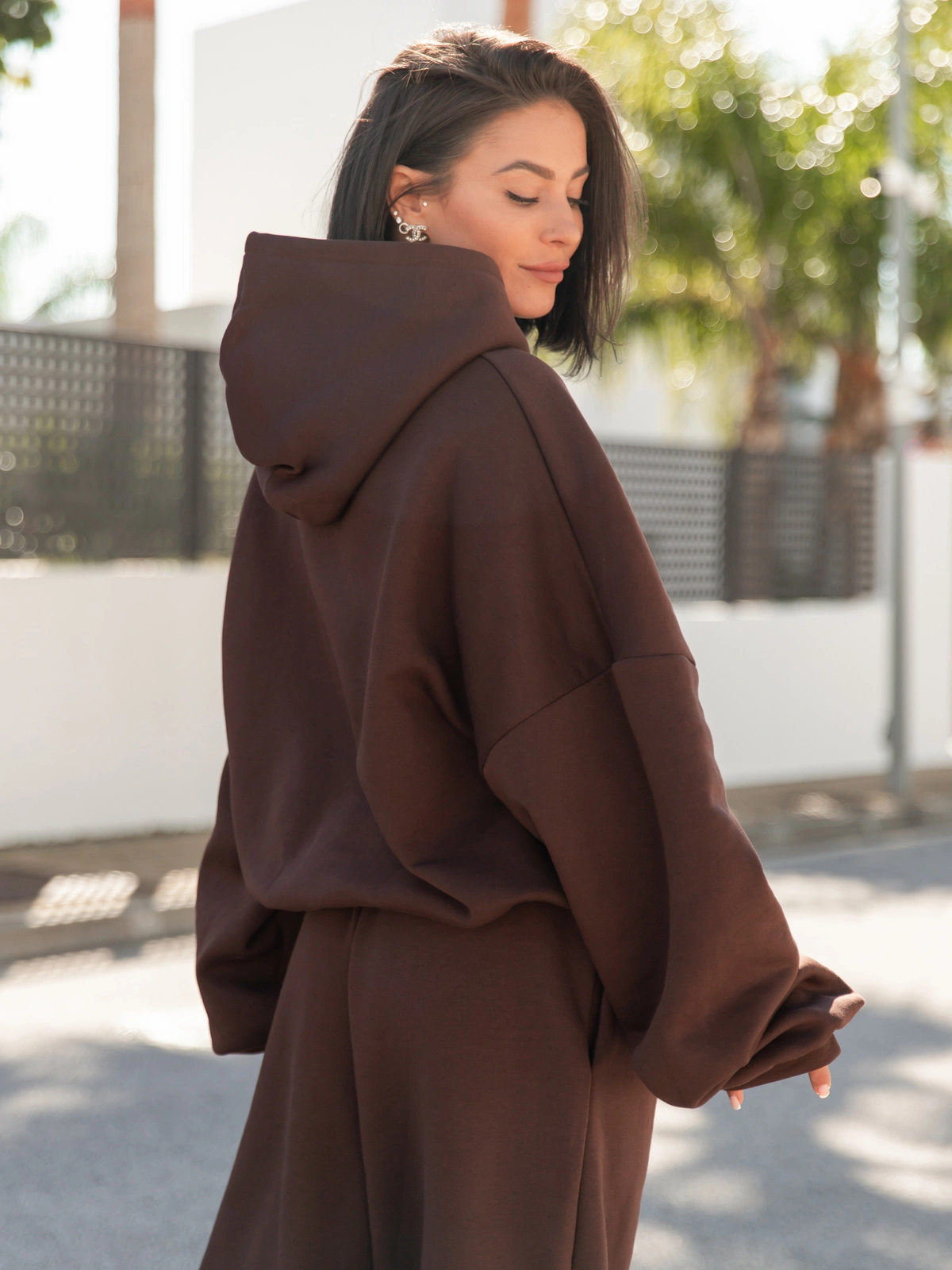 Viralowa Dresowa bawełniana BLUZA z kapturem oversize szeroka brązowa E644