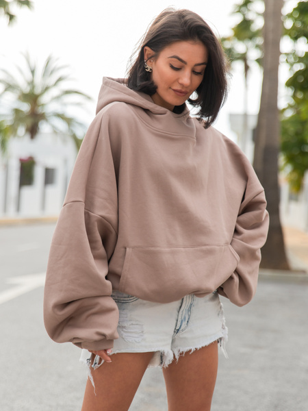 Viralowa Oversizowa BLUZA z kapturem bluzowana kangurka z bawełnianej dresówki mokka X2 k01