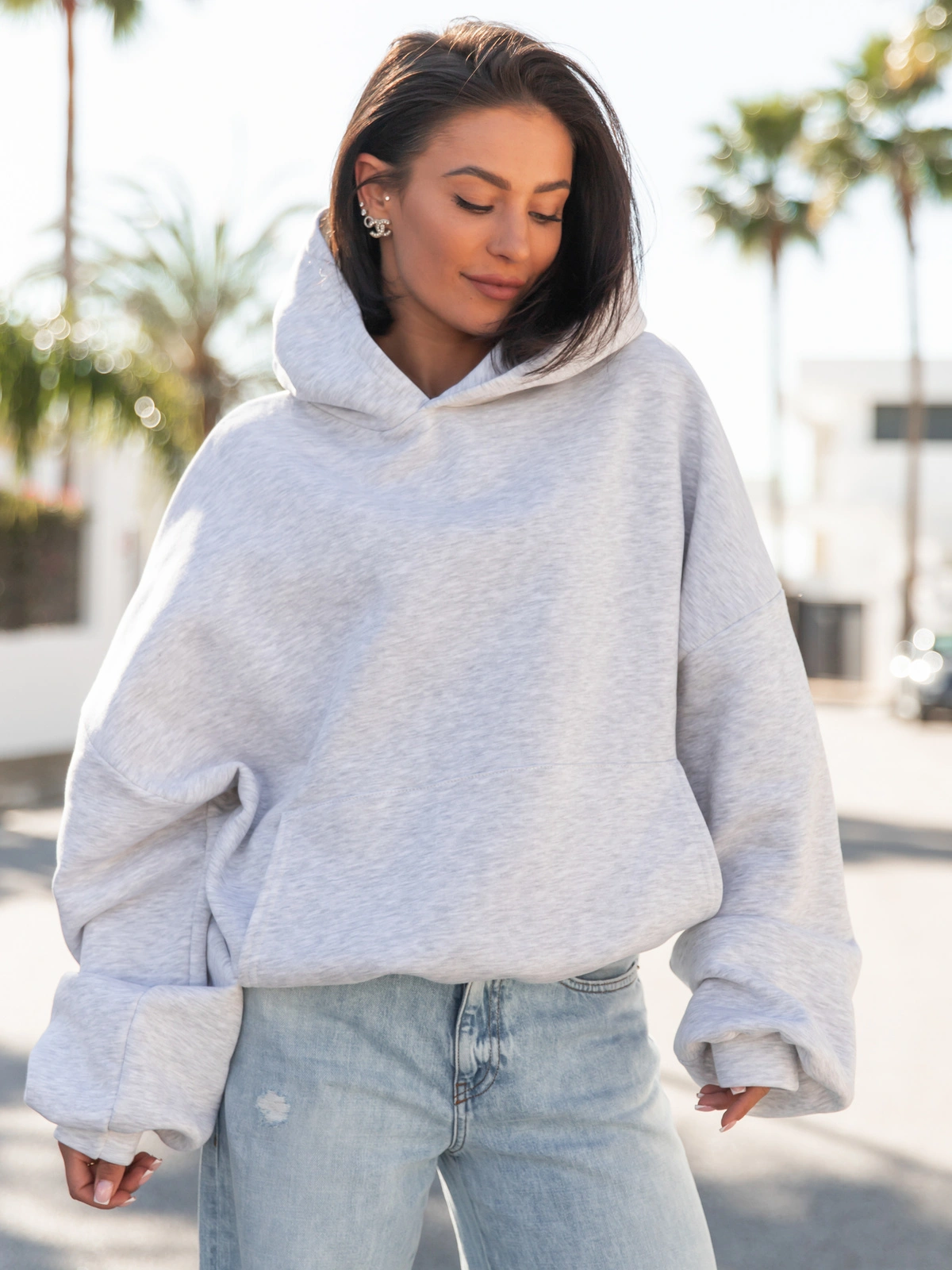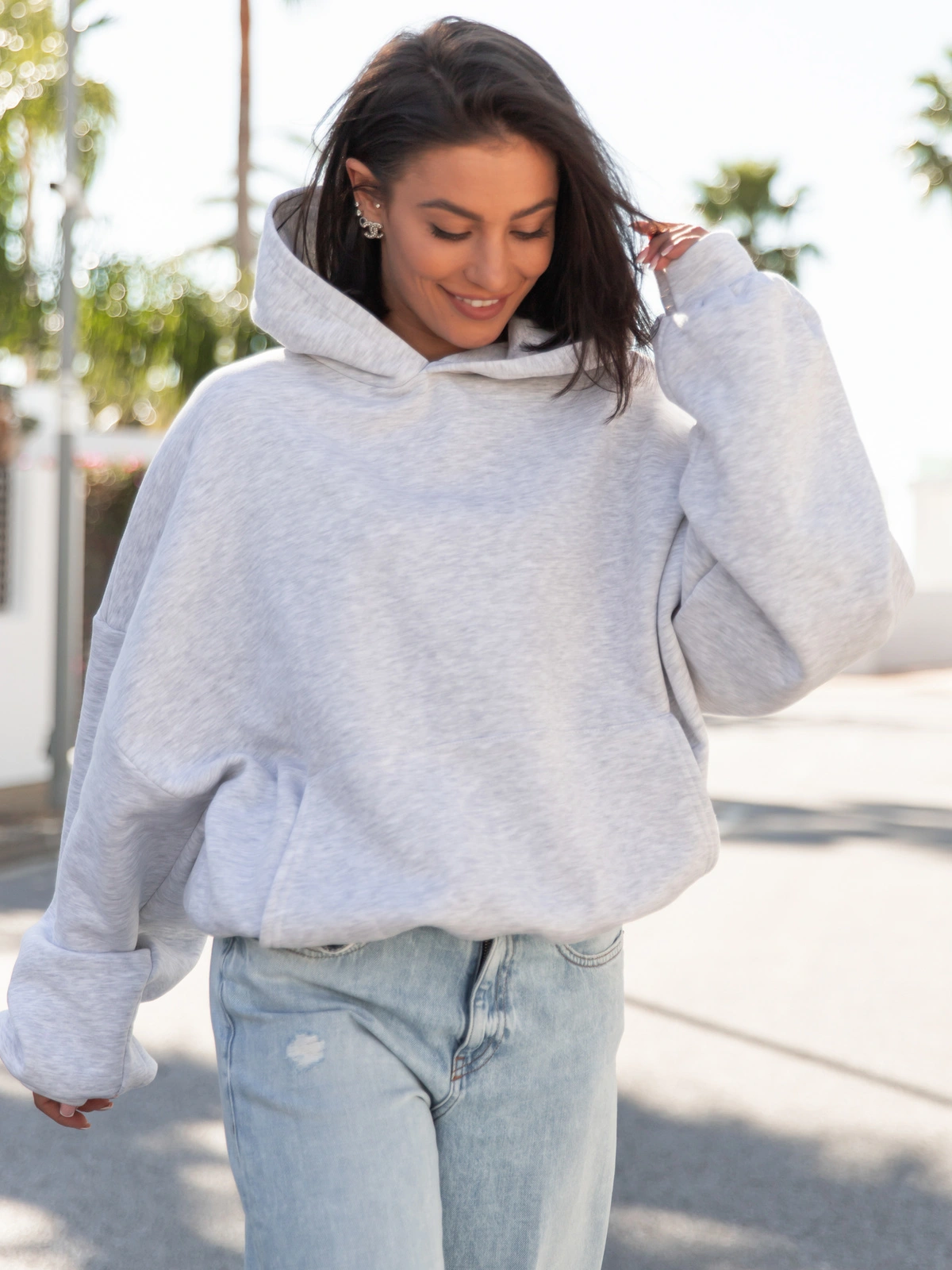 Viralowa Dresowa bawełniana BLUZA z kapturem oversize szeroka szary melanż E644