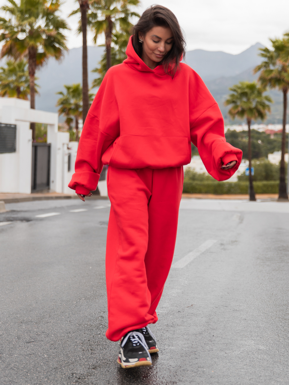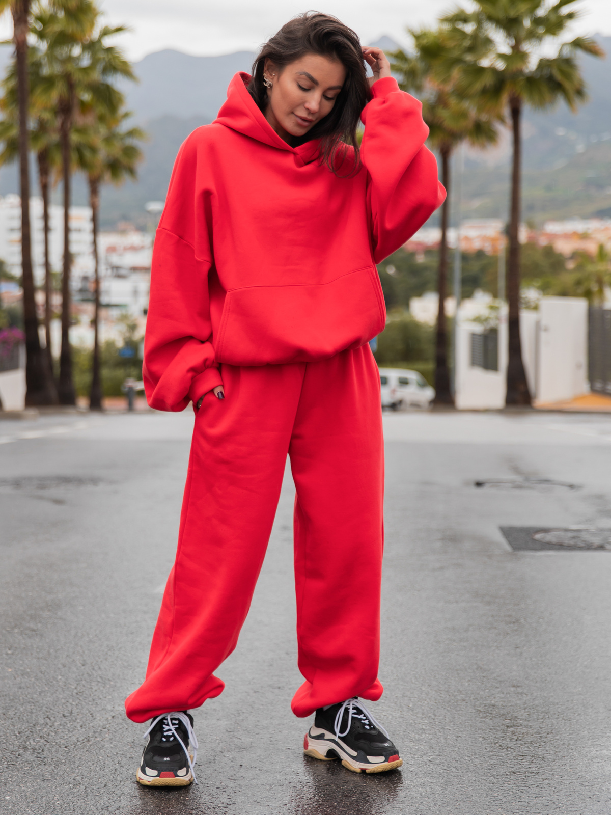Uszyte z wysokiej jakości bawełnianej dzianiny dresowej drapanej od wewnątrz, materiał ten jest wyjątkowo miękki i przyjemny dla skóry. Tkanina premium od polskiego producenta otula ciepłem, a jednocześnie pozwala skórze oddychać, dzięki czemu spodnie sprawdzą się doskonale w każdej porze roku – od chłodniejszych dni po cieplejsze popołudnia.
